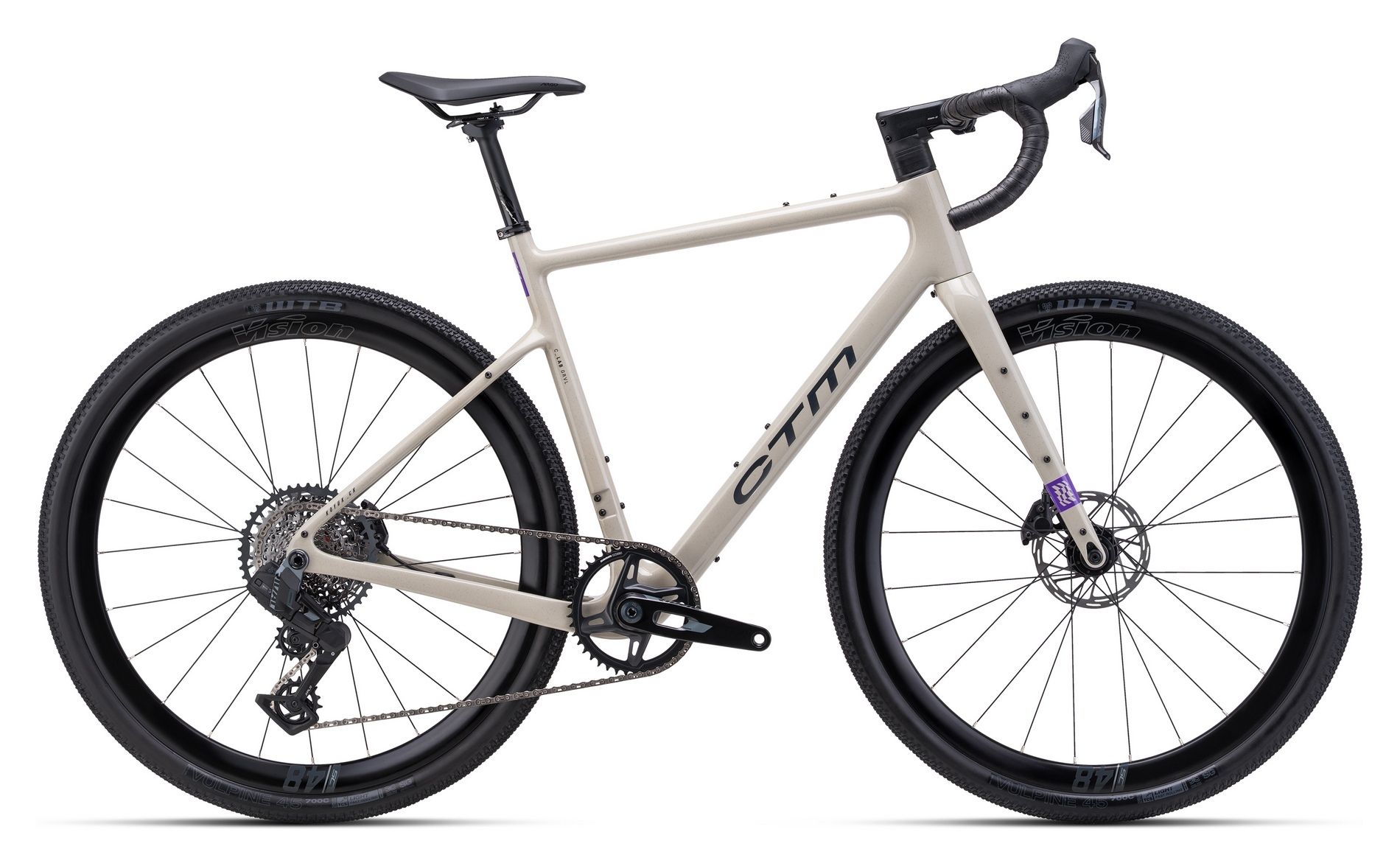 | Vidlice: | CTM Carbon GRVL (max tire clearance 52mm) tapered, internal routing, 12mm thru axle |